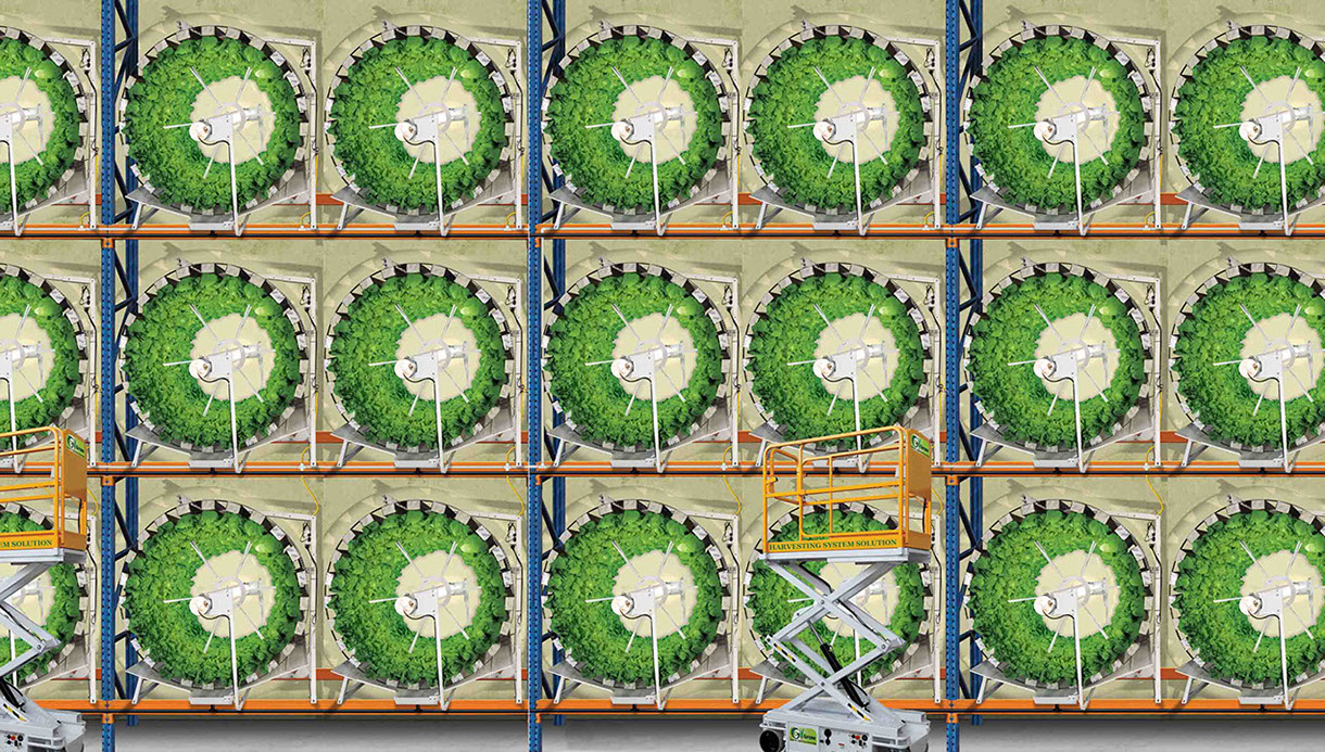 You can stack up the machines on metal shelves for a great growing capacity in a closed and isolated warehouse.