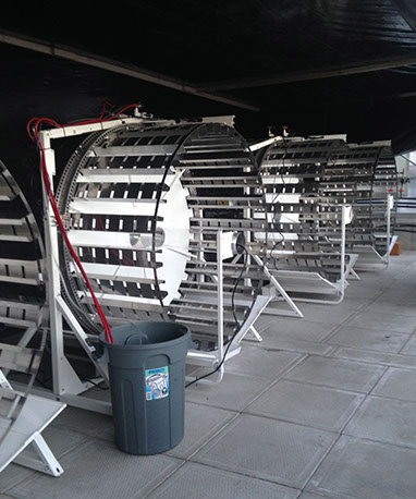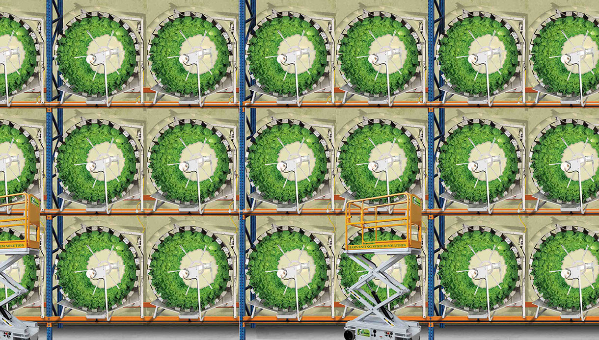 Il est même possible de superposer les machines sur des étagères de métal afin de produire de grandes quantités en entrepôt fermé et isolé.